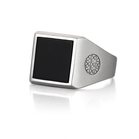 Brushed Square Onyx Ring - Solid Silver